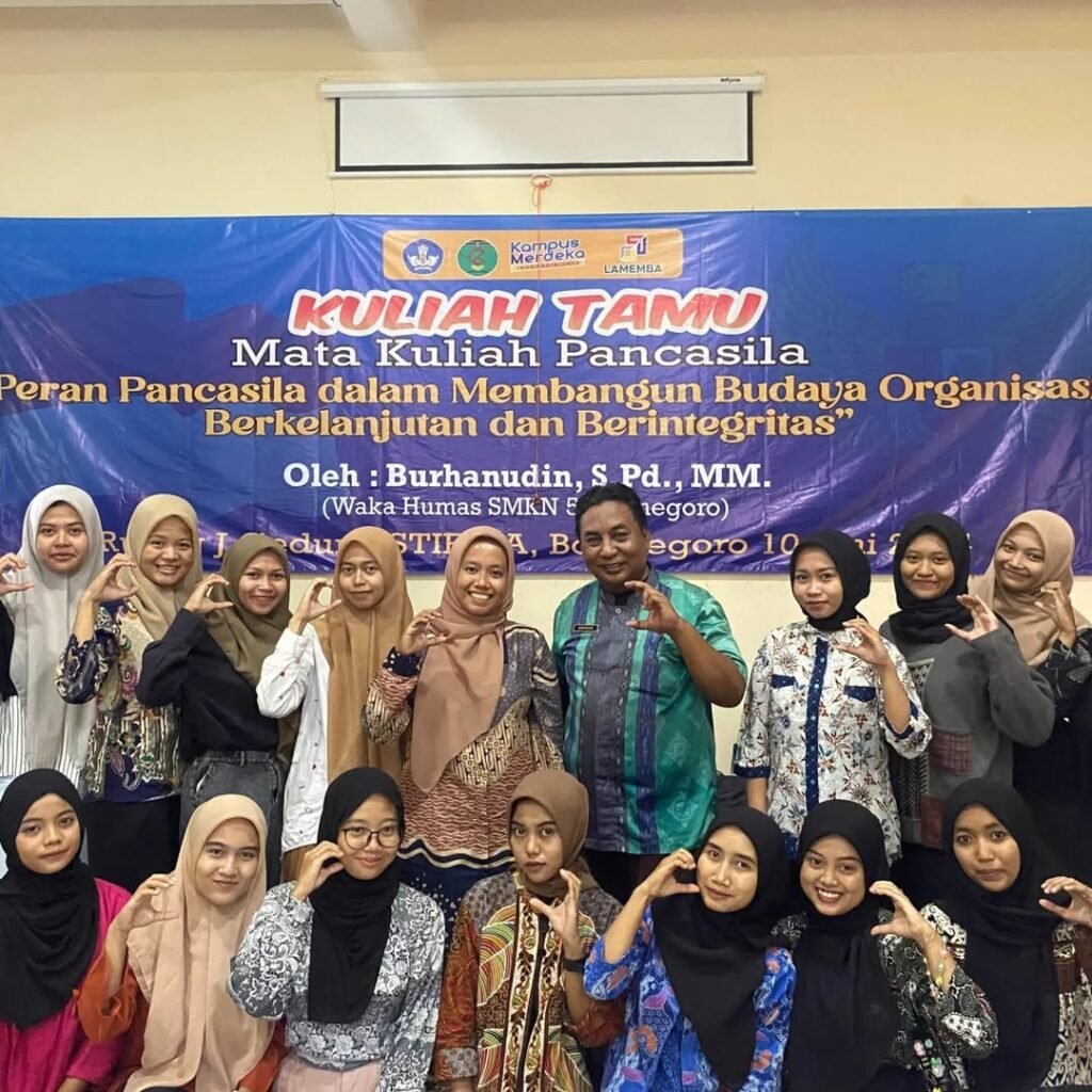 Pada Senin, 10 Juni 2024, STIEKIA Bojonegoro menggelar kegiatan Kuliah Tamu Pancasila dengan tema “Peran Pancasila dalam Membangun Budaya Organisasi Berkelanjutan dan Berintegritas”. Kegiatan ini menghadirkan Bapak Burhanudin, S.Pd., MM, seorang praktisi di bidang kenegaraan sekaligus Wakil Kepala Humas SMKN 5 Bojonegoro, sebagai narasumber.