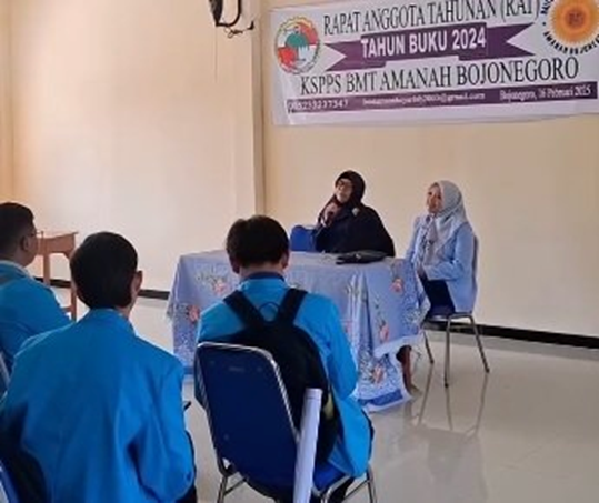Perwakilan BMT Amanah Bojonegoro memberikan penjelasan mendalam mengenai layanan dan program pemberdayaan ekonomi yang telah dilakukan. Mahasiswa terlihat antusias mengikuti penjelasan, berdiskusi, dan mengajukan pertanyaan terkait praktik keuangan syariah di lapangan.