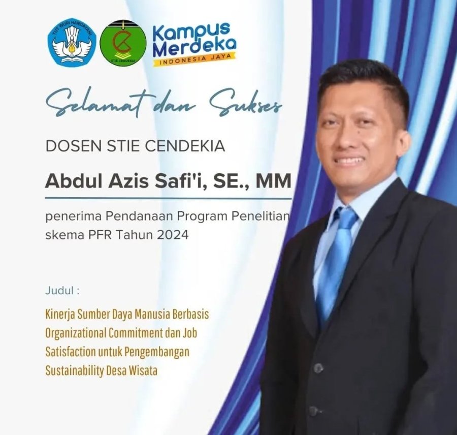 Abdul Azis Safi’i, SE., MM Menerima pendanaan program penelitian skema PFR Tahun 2024 Judul: Kinerja Sumber Daya Manusia Berbasis Organizational Commitment dan Job Satisfaction untuk Pengembangan Sustainability Desa Wisata